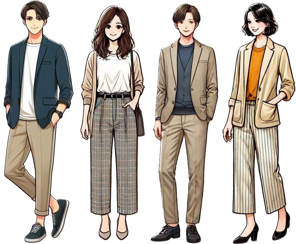 「ジャケット」 「 襟付きシャツ」 「 パンツ」が定番です。